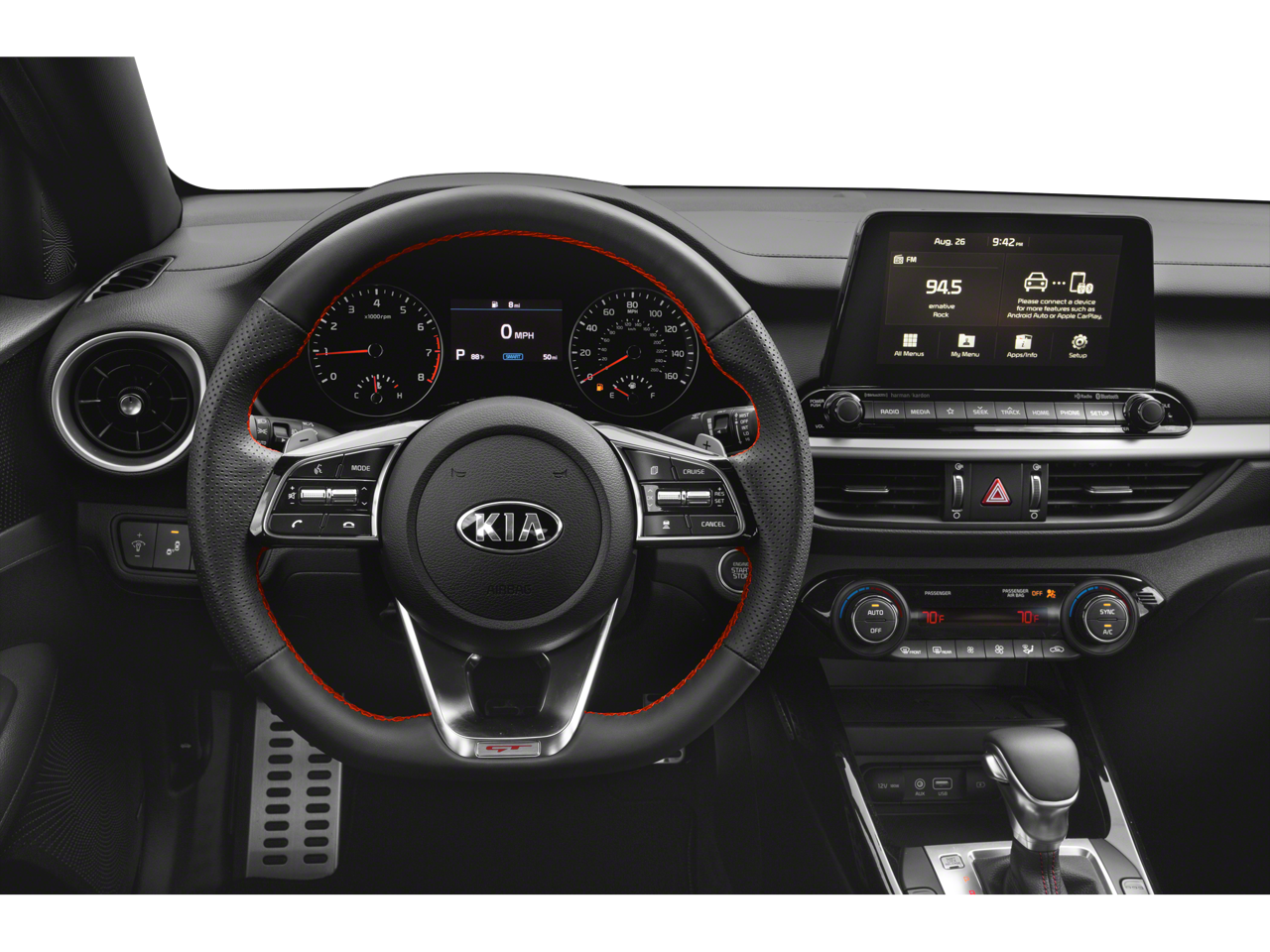 - Radio: AM/FM/MP3 Display Audio System -inc: 6 speakers, 8" touch screen, steering remote control, UVO eServices w/voice recognition, SiriusXM satellite radio, Android Auto and Apple CarPlay smartphone integration, Bluetooth® wireless technology and 2 USB charger ports (front/center console)